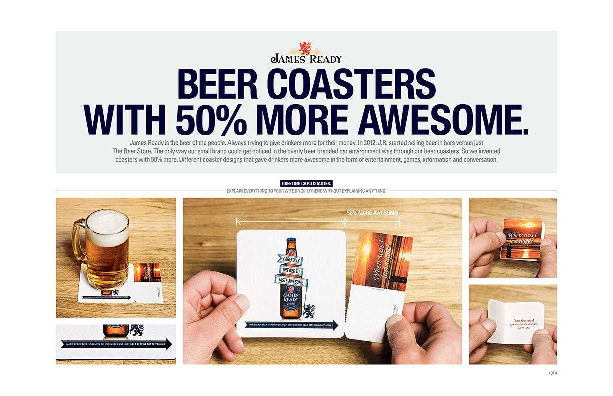 With a budget of less than $15,000, the agency created the first-ever coaster with more – 50% more to be exact. When JR hit the bar scene in 2012, it was accompanied by a coaster that was not just your usual brand story, logo or brewing history, but a coaster with the sole purpose of making the bar experience 50% more awesome for drinkers.