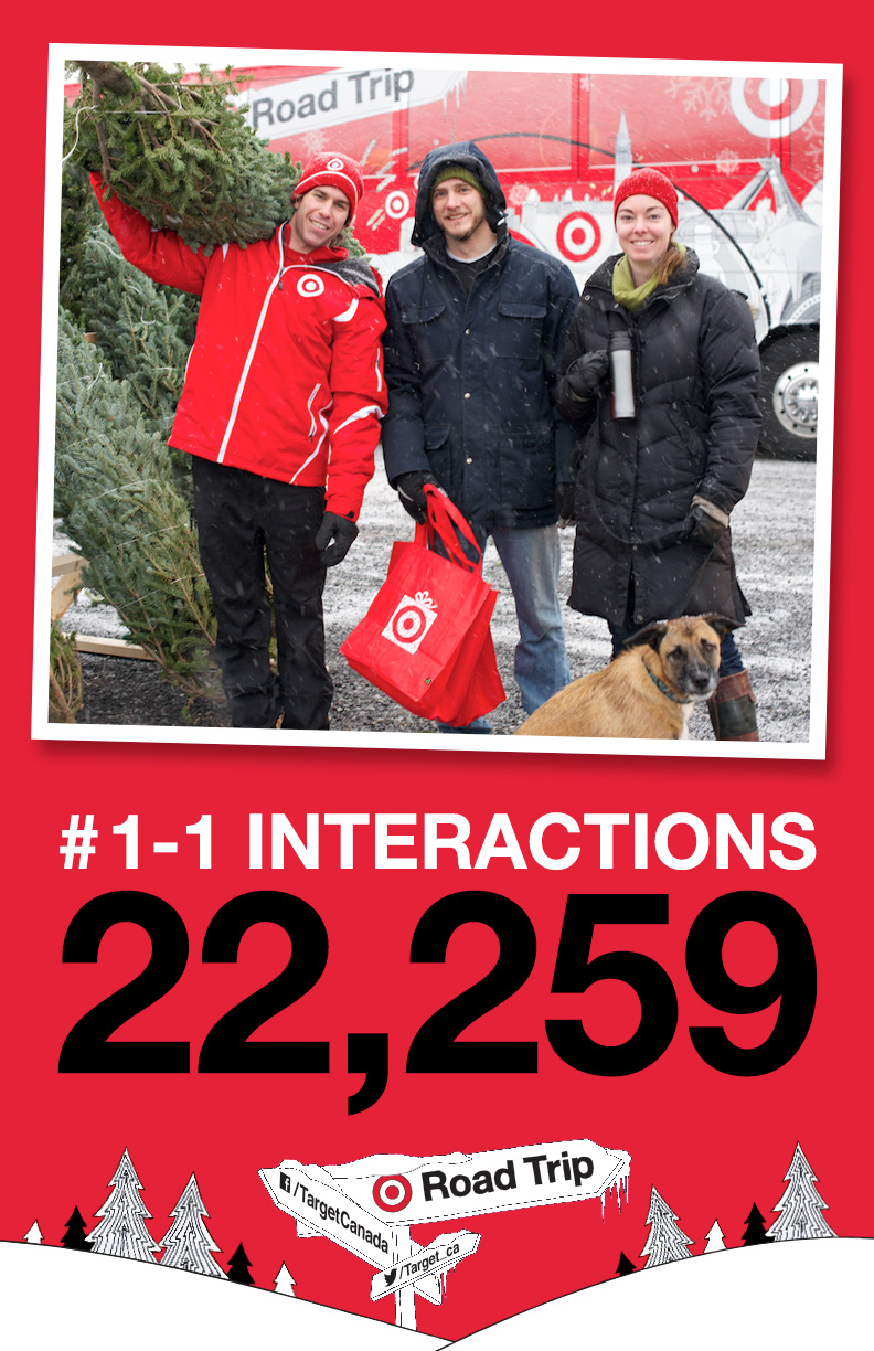 Each event was unique, highly localized, designed from insights specific to the region. This resulted in a sense of shared understanding, and began to help identify Target as a member of each community versus a mass retailer applying a "one-size fits all" solution. While some of the destinations and moments were planned, others were executed spontaneously, with collaboration from Target's social community. As the Target social team engaged the online community, the caravan team interacted with fans/followers throughout their journey. From visiting Montreal's most beloved bagel joints to visiting a die-hard Target fan at her workplace in Kamloops, the goal of the Road Trip was to meet as many of Target's new neighbours as possible.